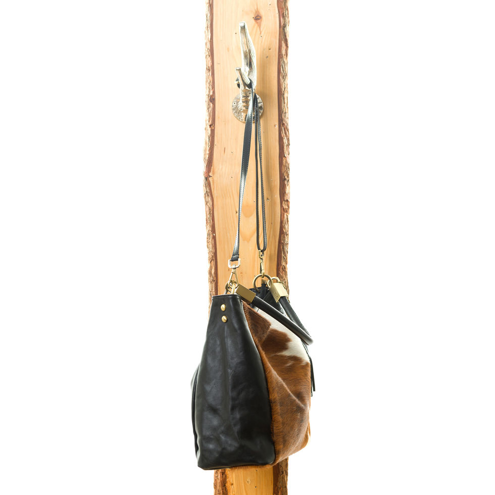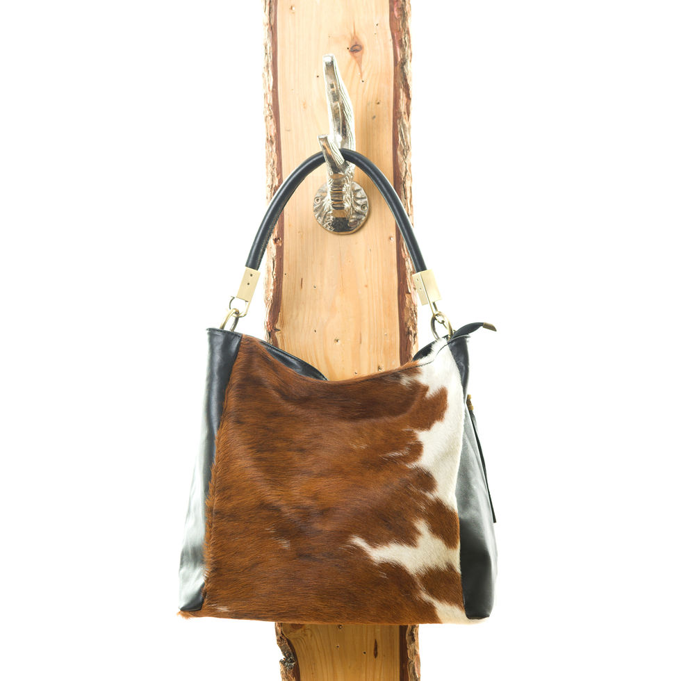 Die begehrte Kuhfellversion ist aufgrund der Maserung immer ein Unikat. Gerne senden wir Ihnen vorab ein Foto Ihrer Tasche.