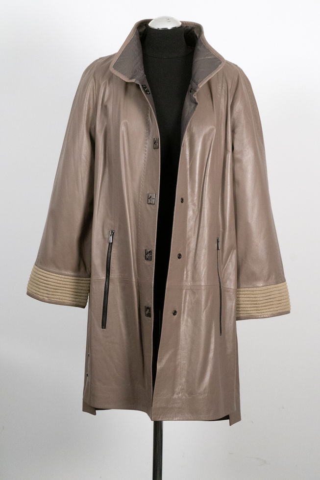 Das Design zeichnet sich durch die kompromisslose Formgebung und spielerische Details und dezenter Farbgebung aus. Der Mantel hat dank seines ultraleichten Gewichts einen einzigartigen Tragekomfort. Farbe taupe.