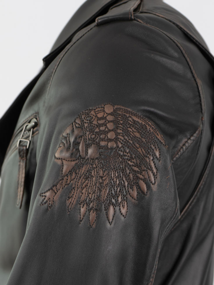 Wer den robusten Biker-Style liebt, der liebt auch die ST-Buffalo NY. Die abgesteppten Stickereien auf Rücken und Arm sind mit Nieten ausgearbeitet und verstärken den rockigen Look dieser Legende unter den Lederjacken. (Tip: Partnerlook)