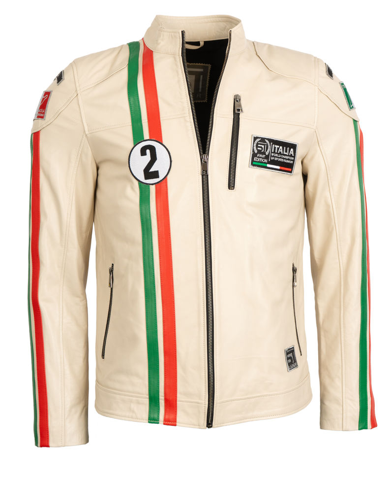 Ein Highlight für jeden Rennsportbegeisterten. Diese klassische Rennjacke aus superweichem Leder ist speziell die AUTO DÉPOCHE in Bologna entworfen worden und nur für eine begrenzte Zeit lieferbar. Inspiriert von Italiens legendärem Autodromo, ein Muss für jeden Motorsportfan. Das exklusive Design zeichnet sich durch aufwendig gestickte Aufnäher und auffällige Applikationen aus und sorgt dafür, dass Sie sich von der Masse abheben.
