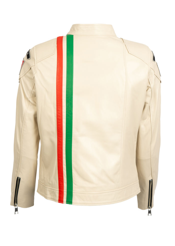 Ein Highlight für jeden Rennsportbegeisterten. Diese klassische Rennjacke aus superweichem Leder ist speziell die AUTO DÉPOCHE in Bologna entworfen worden und nur für eine begrenzte Zeit lieferbar. Inspiriert von Italiens legendärem Autodromo, ein Muss für jeden Motorsportfan. Das exklusive Design zeichnet sich durch aufwendig gestickte Aufnäher und auffällige Applikationen aus und sorgt dafür, dass Sie sich von der Masse abheben.