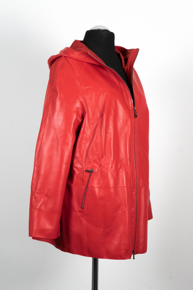 Der supersofte ST-Jersey Ledermantel bietet legeren Schnitt mit höchstem Tragekomfort. Die ausgefallene Gerbung auf der ultrafein geschliffenen Haarseite wurde im Siebdruck veredelt. Kann auch als Wendejacke verwedet werden. Superleicht - nur ca. 300 Gramm.