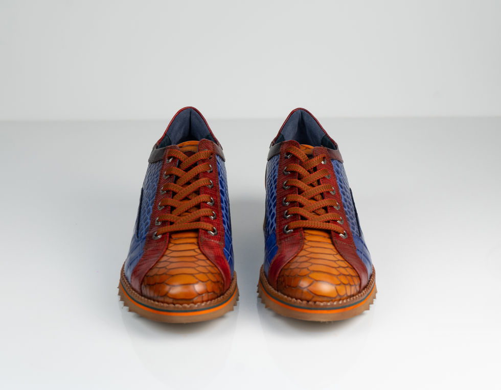 Der STL-Fresh Tejus Cuoio Sneaker Blu wird in Italien aus wunderschönen handpolierten multicolor Kalbsleder gefertigt. Diese Sneaker sehen toll aus mit Blue Jeans oder modernem Anzug.